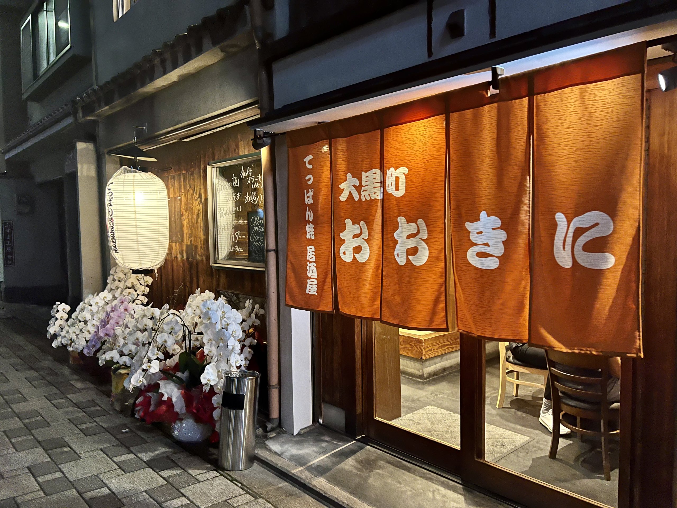 這是一家很新的鐵板燒居酒屋,網路上也還沒有什麼評價,為啥我會知道他剛開幕沒多久呢,因為店門口還放著花籃哩,當時甚至連在 Google Maps 上我還找不到他。
